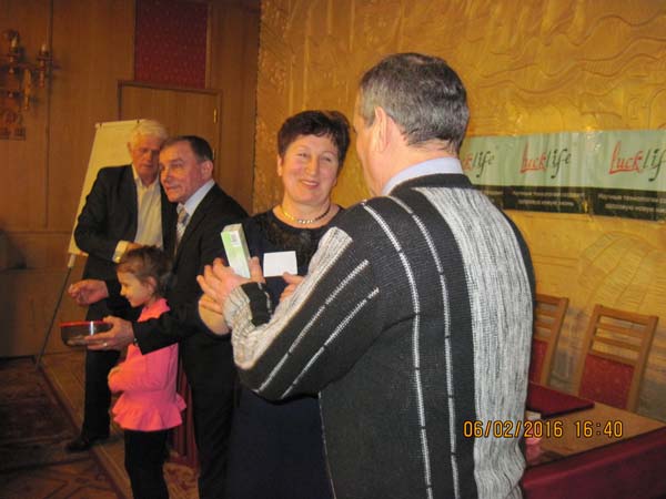 Ведущим презентации была бизнес-руководитель Компании Илькив Нина Леонидовна. О продукции великолепно рассказал Изумруд Компании, врач-иридодиагност, Еккель Александр Алексеевич. Информацией о диагностике по прибору капиляроскопии поделилась врач Костюк Людмила Георгиевна. О маркетинг-плане и бизнес- возможностях с Компанией Лаклайф, рассказал бизнес-руководитель компании Левичев Владимир Федорович. Многи партнеры делились своими результатами. Приглашенные задавали много интересных вопросов. В процессе презентации была проведена лотерея, в результате которой многие приглашенные получили ценные призы в виде продукции Компании. Все учасники встречи получили подарки от Компании, делились впечатлениями.