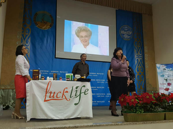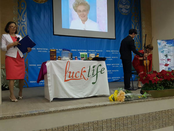 Вниманию гостей был представлен фильм о корпорации LuckLife. Доступно и интересно о продукции рассказала золотой лектор компании Светлана Сепбосынова. Серебряный алмаз компании Жунисбекова Бахытгуль ознакомила присутствующих с маркетинг-планом компании, а Бояндина Ляззат поделилась незабываемыми впечатлениями о путешествиях вместе с компанией LuckLife. Своими результатами по оздоровлению поделились партнеры компании.