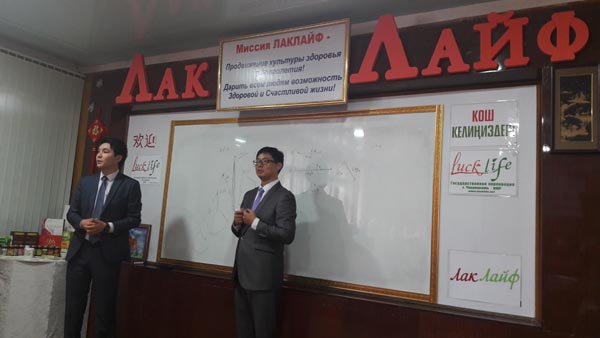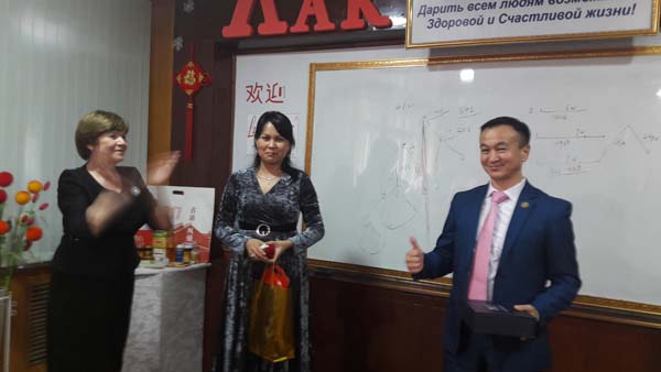 5 ноября в столице нашей родины городе Бишкек, состоялось торжественное мероприятие посвященное к знаменательному событию. С почетным визитом ,Кыргызстан посетил генеральный директор гос.корпорации "ЛакЛайф" господин Цзи Цзюнфенг (КНР), замдиректора европейского отделения господин Денис Сергеевич Ананьев(Россия) и замдиректора по Центрально-Азиатскому региону гоподин Алдабергенов Абзал (Казахстан). Так же гостями события были лидеры "ЛакЛайф" из Казахстана , первые обладатели высокого , почетного звания "Императорская Корона" замечательная семейная пара- Хегай Владимир Чер-Бонович и Елизавета Николаевна! "Золотой Алмаз" и "Золотой Лектор" корпорации "ЛакЛайф", специалист по восточным методам оздоровления, замечательный и прекрасный человек, которая провела на высоком уровне ,двухдневный обучающий тренинг для партнеров по "Оздоровительным приборам и методам ЛакЛайф " -госпожа Сепбосынова Светлана Коженовна ! Из России нас посетила, вышестоящий наставник первых "Золотых Алмазов" в Кыргызстане Абдылдаевых Уланбек и Алтынай, замечательная женщина, первый "Золотой Алмаз" корпорации - госпожа Ольга Николаевна Чиканова !