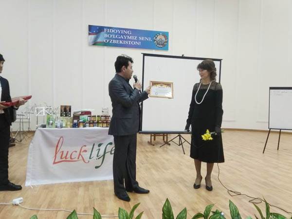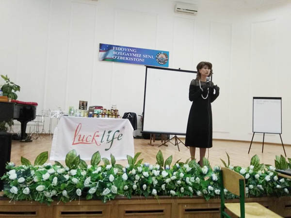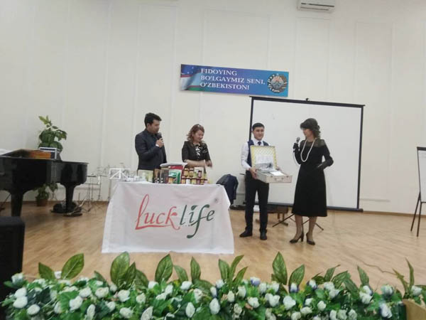 С речью выступил Генеральный директор представительства «LUCK LIFE - Узбекистан», кандидат медицинских наук, нейрохирург, специалист по валеологии (здоровый образ жизни) Ганиев Бахром Абдуганиевич. Представительство корпорации в Узбекистане открыто еще в июне месяце прошлого года. Работать начали только с 4 января 2018 года. За это время проводилась работа руководством представительства по подготовке документации для свободной работы на территории Узбекистана, согласно, законодательных актов страны. За короткий период работы, ведь, ещё нет 2-х месяцев как начала работать представительство , но выполнили ощутимый объем работы, где 3 человека закрыли промоушн поездку в Китай, на элитную диагностику. Эти лидеры: Рузиева Зулайхо (Феруза) , Мухторова Гульнора, Ганиев Бахром.