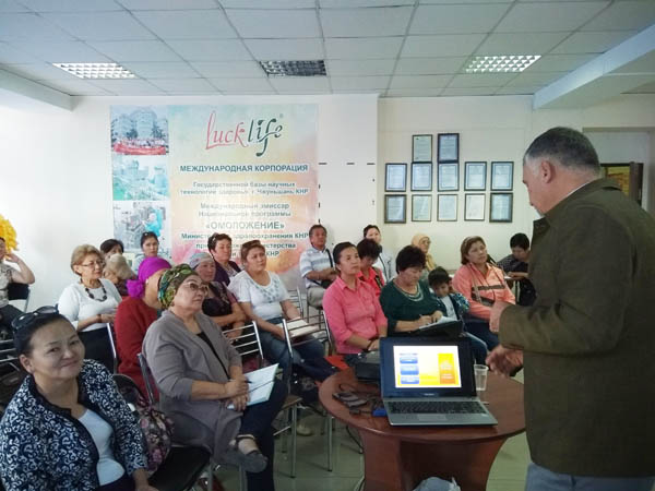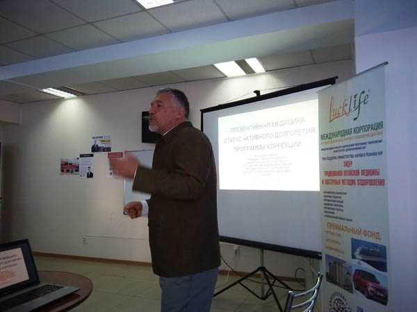 В Бишкеке в офисе Luck Life cостоялась встреча с Врачом антивозрастной медицины, онкологом, кандидатом медицинских наук российской медицинской академии профессионального образования, кафедры Радиологии и Радиотерапии города Москвы, г-ном Мустафиным Чингизом Николаевичем. Он прочитал краткую лекцию по вопросам онкопрофилактики, маммологии, онкореабилитации. В своей лекции он вкратце осветил историю медицинской науки и акцентировал внимание слушателей на авторитет традиционной китайской медицины. Также он сделал сравнительный анализ между теорией восточных методик оздоровления и западной медицины. Партнеры Luck Life с большим интересом заслушали его лекцию с целью повышения квалификации в области консалтинга по традиционной китайской медицине. Это была интересная и плодотворная встреча. В завершение встречи, Мустафин сделал намерение сотрудничать с Корпорацией Luck Life в Москве, где он постоянно проживает и работает.
